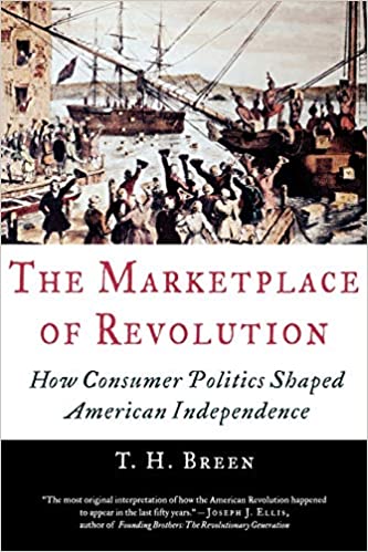 T.H. Breen extensively documents the material culture of the American colonies in the decades before the Revolution to argue that the new consumer marketplace created an imagined community of consumers who rebelled against the English. The unjust taxes that the Crown imposed, in the 1760s and 1770s, on the colonists’ new and beloved consumer goods cause rebellions that came to define them as political individuals. Rather than Bailyn’s ideological revolution, Breen offers a movement based on the marketplace, the common man and quotidian life. The book “explores how a very large number of ordinary Americans came to the striking conclusion that it was preferable to risk their lives and property against a powerful British armed force than to endure further political oppression.”