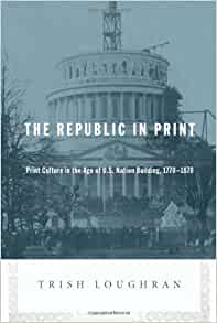 The Revolution and the ratification of the Constitution actually depended on this fragmented public sphere and print network. If one existed, Loughran posits, it would have better resisted a Federal state.